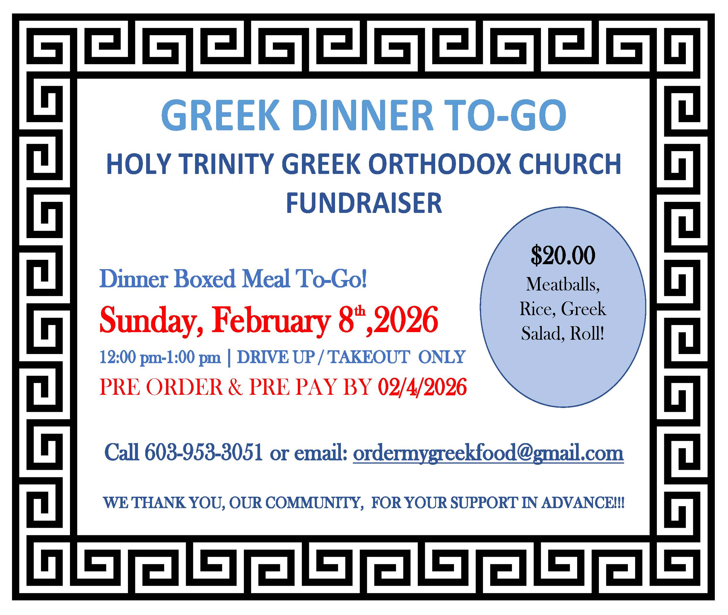 Holy Trinity Greek Orthodox ChurchGeneral Assembly Agenda, November 17, 2024A General Assembly Meeting will be held on Sunday November 17, 2024 at 11:50am after the liturgy. If noquorum of the members in good standing is present, the meeting will be adjourned and a new meeting will becalled at noon on November 16, 2024. The agenda will be as follows: